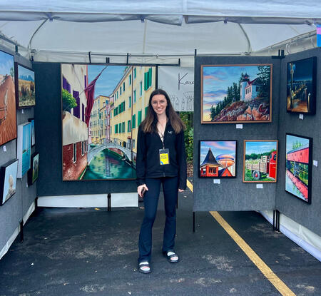 I’m a self-taught oil painter who got started during COVID and never really stopped. I love working with bright colors and adding small, realistic details—especially in wildlife and architecture. As a travel nurse, I’m always on the move, so a lot of my inspiration comes from the places I’ve lived and the people I’ve met. Most of my paintings come from photos I’ve taken on the road, which makes each piece feel personal and tied to my travels.